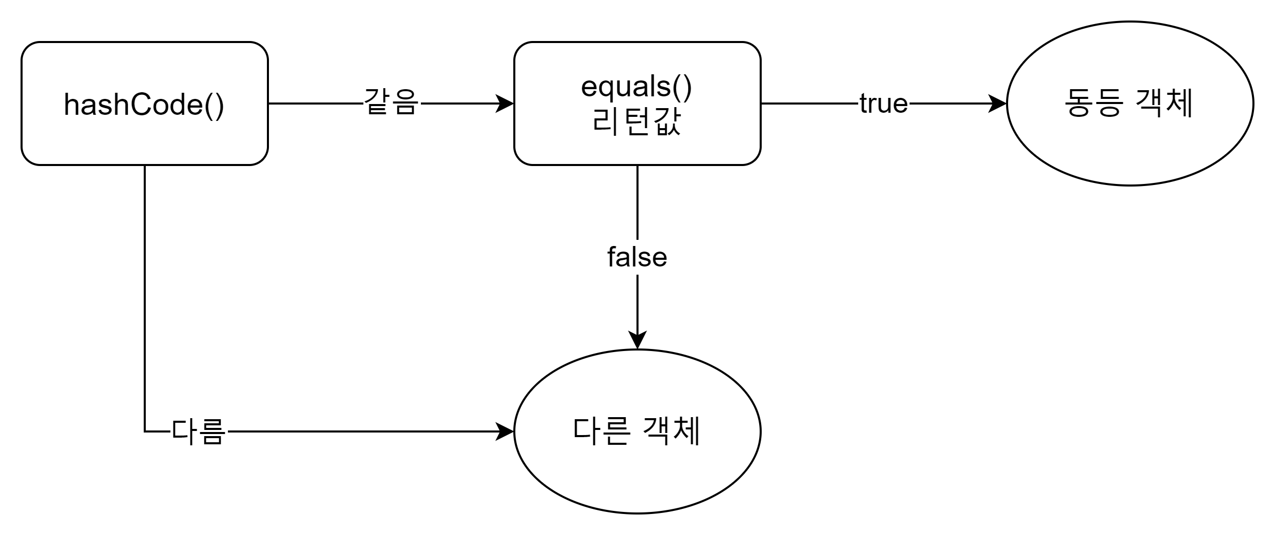 : 객체 해시코드 : 객체를 식별할 하나의 정수값. 객체의 메모리 번지를 이용해서 해시코드를 만들어서 리턴==> 객체마다 다른 값을 가지고 있다.