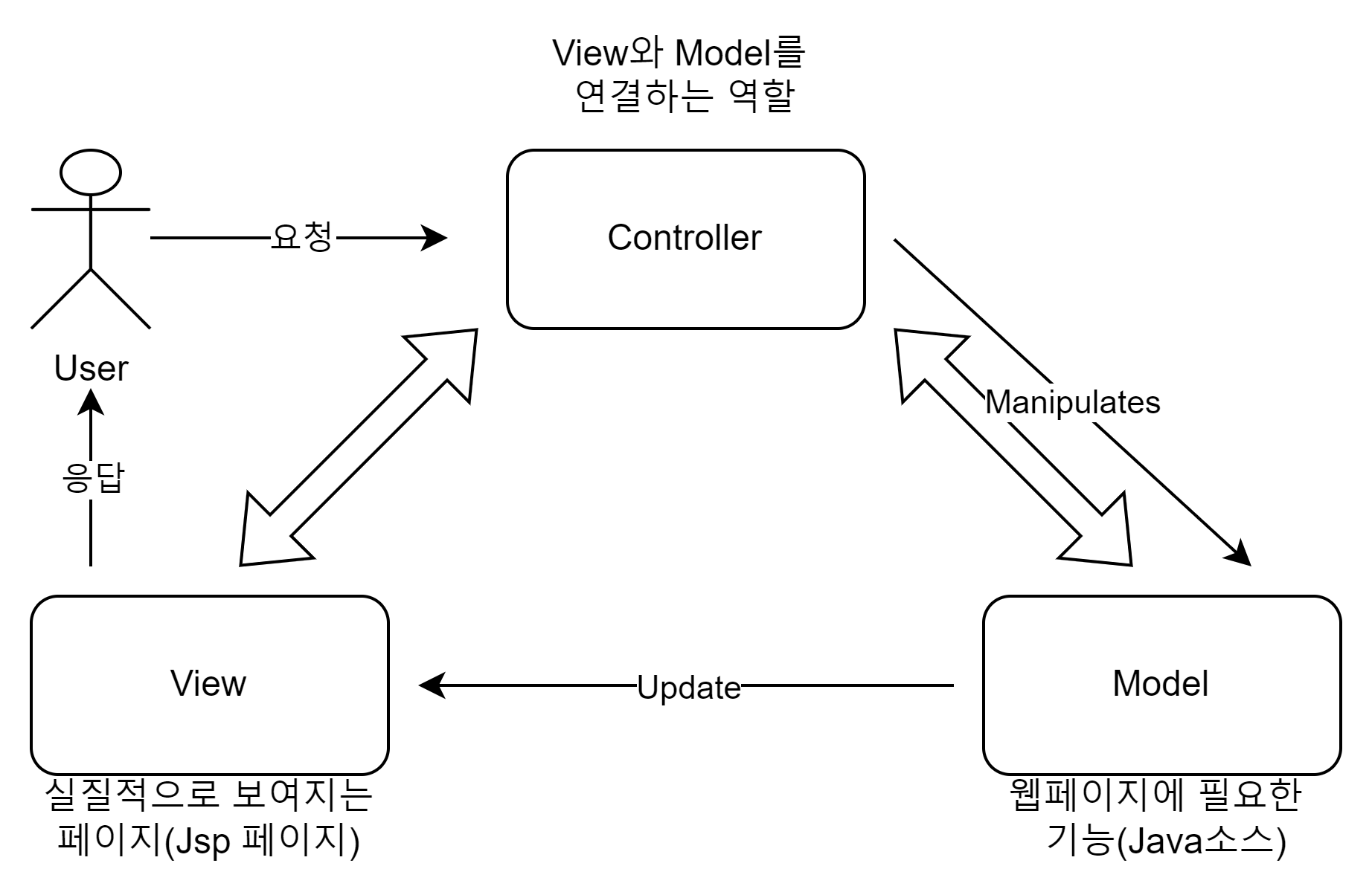 - 하나의 애플리케이션, 프로젝트를 구성할 때 그 구성요소를 세가지의 역할로 구분한 패턴